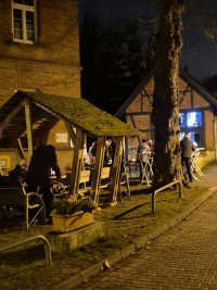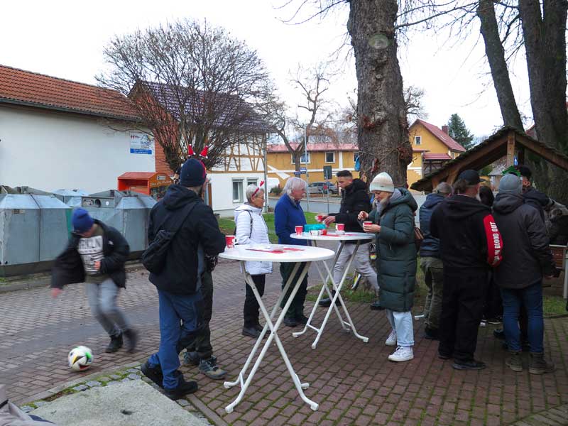 Das Aufrichten und die Verankerung in der Hülse dauerte ein Weilchen, da der Baum sich einfach nur weigerte. Unterdessen gab es für die Zuschauer und Unterstützer schon Heißgetränke und auch etwas gegen den Hunger.