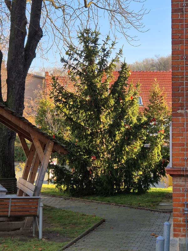 Drei Tage später musste nachgebessert werden denn ein Sturm hatte den Weihnachtsbaum etwas in Schieflage gebracht. Es dauerte jedoch nicht lange und der Baum stand wieder so, wie er stehen sollte.