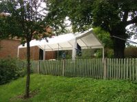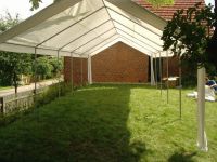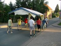 Schon im Vorfeld war klar, dass wir uns um Räumlichkeiten für das Fest kümmern mussten. Da in Hochstedt keine entsprechenden Möglichkeiten vorhanden sind wurde beschlossen Zelte anzuschaffen. Die Frage des Ortes der Veranstaltung war schnell geklärt - der Hof des Bürgerhauses bietet sich dafür, nicht zuletzt wegen seiner zentralen Lage, ausgezeichnet an.