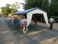 Im Juli wurden zwei Zelte gekauft. Der Probeaufbau eines Zeltes erfolgte am 9. August. So konnten wir ermitteln, wie die Aufteilung des Platzes zum Festtermin aussehen soll.