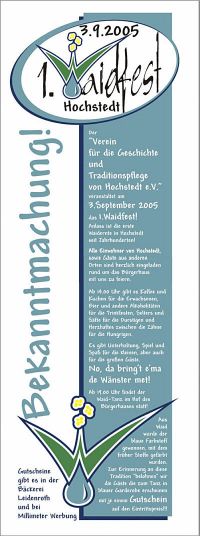 Um auf das neue Fest aufmerksam zu machen, wurden Plakate entworfen und gedruckt. Auch in den Nachbarorten wurde damit auf das Fest neugierig gemacht...