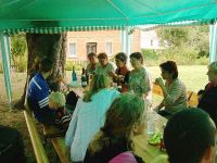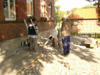 Nach einer kurzen Begutachtung war klar, dass vor dem Waidfest im Museum noch einmal der Putzlappen geschwungen werden musste. Während die Männer draußen im Hof die Zelte aufbauten übernahmen die Frauen die Säuberung der Ausstellungsräume. Schließlich sollte das Museum zum Waidfest besichtigt werden können.