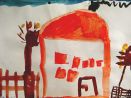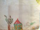 Künstler / Künstlerin: R. Kowalke Jahr: 2007 Titel: "Blumen, Regenbogen, Haus und Kühlschrank" Technik: Buntstift |