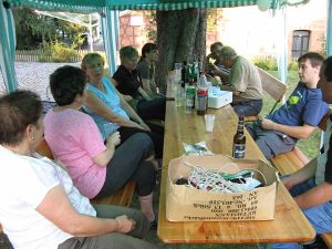 Am anderen Morgen war Aufräumen angesagt. Es liegt in der Natur der Sache, dass immer schneller abgebaut als aufgebaut ist. So waren wir auch schnell fertig mit dem Wegräumen der Zelte und konnten das Waidfest gemütlich ausklingen lassen.