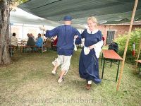 Zu den volksmusikalischen Klängen der Musiker hielt es keinen auf den Plätzen. Selbst Waidbäuerin und -bauer trauten sich ein Tänzchen auf dem Rasen hinzulegen, was bedingt durch die Holzschuhe des Bauern nicht ungefährlich für die Bäuerin oder die gleich in der ersten Reihe sitzenden Gäste war.
