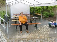 Los ging es am Morgen des 16. Mai mit dem Aufbau des Zeltes. Da das Wetter recht trüb aussah, so als ob der Himmel in jedem Augenblick seine Schleusen öffnen wollte, war ein Dach über dem Kopf notwendig.