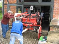 Anschließend musste die Feuerspritze aus dem Museum bugsiert ...