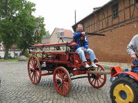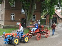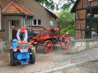 Am ehemaligen Spritzenhaus war zunächst Endstation für die Spritze und der Traktor tuckerte davon.
