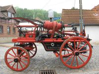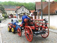 Auch das gehört zum Frühjahrsputz: Das Reinigen der aus dem Jahr 1884 stammenden Feuerspritze, die gleichzeitig das größte Exponat darstellt. Sie sollte aber nicht nur gereinigt, sondern auch auf ihre Funktionstüchtigkeit überprüft werden. Deshalb war es notwendig sie aus dem Museum herauszuholen. Damit recht viele Hochstedter etwas von ihrer Spritze zu sehen bekamen, hatten wir einige Getränke und auch einen Bratwurstrost am ehemaligen Spritzenhaus im Unterdorf bereitgestellt.