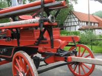 Die Spritze stand natürlich gleich im Mittelpunkt des Interesses. Klar, man kann sie jederzeit im Museum besichtigen, aber zuletzt war die Spritze zur 900-Jahrfeier in Hochstedt unterwegs gewesen.