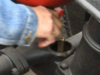 Hinten, an der Schüttquelle sollte die Spritze gesäubert und ausprobiert werden.