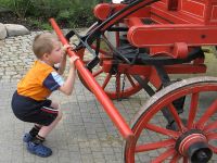 Anschließend musste die Feuerspritze aus dem Museum bugsiert ...