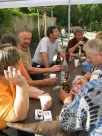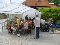 Los ging es am Morgen des 16. Mai mit dem Aufbau des Zeltes. Da das Wetter recht trüb aussah, so als ob der Himmel in jedem Augenblick seine Schleusen öffnen wollte, war ein Dach über dem Kopf notwendig.