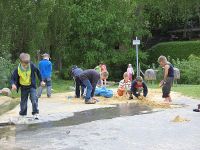 Auch das gehört zum Frühjahrsputz: Das Reinigen der aus dem Jahr 1884 stammenden Feuerspritze, die gleichzeitig das größte Exponat darstellt. Sie sollte aber nicht nur gereinigt, sondern auch auf ihre Funktionstüchtigkeit überprüft werden. Deshalb war es notwendig sie aus dem Museum herauszuholen. Damit recht viele Hochstedter etwas von ihrer Spritze zu sehen bekamen, hatten wir einige Getränke und auch einen Bratwurstrost am ehemaligen Spritzenhaus im Unterdorf bereitgestellt.