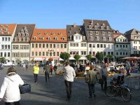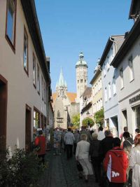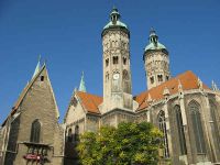 Wir erreichten den Marktplatz der Ratsstadt, wo auch der höchste Kirchturm der Stadt, nicht etwa der des Domes, in den Himmel ragte. Die Ratsherren wollten immer etwas höher hinaus als die Geistlichkeit es eigentlich erlaubte und bauten den Turm ihrer Kirche höher als die Türme des geografisch sowieso niedriger gelegenen Domes. Wenn man, von welcher Seite auch immer in die Stadt hinein fährt, fällt der Blick zunächst auf die St. Wenzel Kirche.