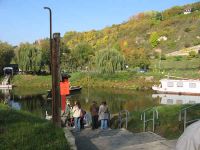 Dort angekommen stand eine Personenfähre, eine der letzten reinen Personenfähren Deutschlands, abfahrbereit, um uns an das andere Ufer zu fahren. Dort wollten wir im Gartenlokal "Blütengrund" eine Mittagspause einlegen.