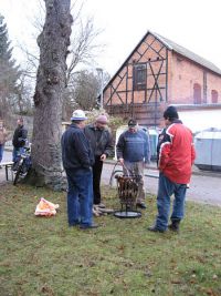 Glühend war nicht nur der Wein in den Tassen, nein, auch einiges Holz im Feuerkorb. Ein paar lodernde Scheite sollten erfrorene Hände aufwärmen.