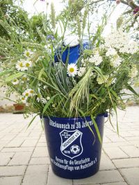 Der Sportverein Blau-Weiß 90 Hochstedt feierte ab dem 27. Juni sein 30 jähriges Bestehen. Zur Eröffnungsveranstaltung war auch der Heimatverein eingeladen. Als Präsent gab es von uns einen blau-weißen Fußball, der in einem Strauß Feldblumen in den Vereinsfarben steckte.