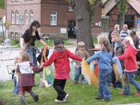 Nachdem der Tanz mit bunten Tüchern beendet war, warteten nun die Knirpse auf das, was dann kommen sollte ...