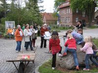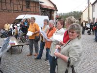 Auch dieser Programmteil war eine kleine Premiere und zuletzt vor einigen Jahrzehnten zu sehen. Es existierten alte Bilder aus den 50er und 60er Jahren des letzten Jahrhunderts, auf denen zu sehen war, dass ein Hochstedter Chor am Platz ohne Namen stand und aus Anlass des 1. Mai gesungen hatte.