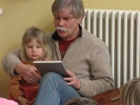 Der vierte Nachmittag seiner Art stand ganz im Zeichen von allerlei Tieren. Die drei Vorleser hatten sich, ohne Absprache, für Geschichten aus der Tierwelt entschieden, denen die Hochstedter Knirpse lauschten. Insgesamt waren 13 Kinder gekommen, die sich rasch auf den Decken und Kissen niedergließen, um ganz genau zuhören zu können.