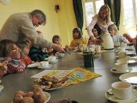 Pfannkuchen waren nicht nur für den Kaffeetisch im Anschluss an die Lesung gedacht, sondern einer spielten auch in der letzten Geschichte eine Rolle. Er rollte und rollte und traf unterwegs viele Tiere, die ihn fressen wollten, jedoch nicht fassen konnten.
