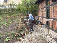 2009 der Besen im Museum geschwungen, um all die dort ausgestellten Exponate zu entstauben und sauber zu machen. Aber nicht nur der Besen kam an diesem 18. April zum Einsatz, nein, auch eine Kettensäge. Keine Angst, zersägt wurde nichts anderes, als der Weihnachtsbaum vom Vorjahr, der später zur Befeuerung des Feuerkorbes dienen sollte.Es galt nun auch die Ausstellung vom Vorjahr "Die Hochstedter Hexe von 1538" abzubauen, um Platz zu machen für die neue Sonderausstellung "Feuer und Wasser". Alle Beteiligten bedauerten das Ende der Hexenausstellung wegen der zum Teil schönen Exponate, wie der vielen getrockneten oder der in Öl aufbewahrten Heilkräuter. Zum Teil blieben diese aber Bestandteil der Exponate und können auch weiterhin im Museum besichtigt werden.