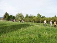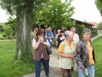 Nach der Besichtigung des Museums - die nächste Gruppe, die hinein wollte wartete bereits - gingen wir auf einem schmalen Weg etwa 500 Meter bis zu einer Linde. Diese markierte den Mittelpunkt Deutschlands und war nach der politischen Wende an dieser Stelle gepflanzt worden. Dabei gab es einen Streit der Vermesser, denn manch einer von ihnen kam bei der Vermessung Deutschlands zu einem anderen Ergebnis, dass nämlich der Mittelpunkt des Landes in einem Ortsteil von Heiligenstadt liegen würde.