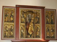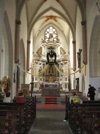 Herausragend war der in einem Seitenschiff stehende Altar der Heiligen Anna selbtdritt mit der Gottesmutter Maria auf einem und dem Jesuskind auf dem anderen Arm. (selbdritt ist ein veraltetes Wort für zu dritt)