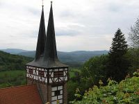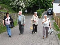 Nach dem Genuss dieser Aussich mit Blick auf die etwas unterhalb, in Hessen liegende Burg Ludwigstein machten wir uns an den Abstieg. Wir ließen die Burg hinter uns zurück und hatten bald - da es ja bergab ging - das Gasthaus am Fuße des Berges erreicht, wo die andere Gruppe schon in saus und braus zusammensaß.