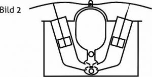 Die Hochstedter Feuerspritze ist mit leicht zugänglichen und leicht herausnehmbaren Ventilen versehen, die mit Schrauben befestigt sind. Der auf dem Saugrohr angebrachte Windkessels bewirkt, dass Stöße beim Ansaugen vermieden werden. Das Bild 2 zeigt das Prinzip der Hochstedter Feuerspritze mit schräg stehenden Zylindern im Querschnitt.