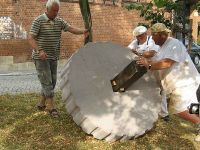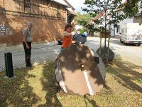 ... bevor er mit einer Plane verhüllt wurde. Die Enthüllung des Steins sollte ja erst eine Woche später zum 5. Waidfest erfolgen.