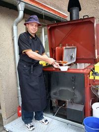Allerdings wurde zunächst einmal die Gulaschkanone angeheizt, denn ab Mittag gab es aus ihr Gulasch und Erbsensuppe. Wer wollte, konnte sich auch noch eine Bockwurst einverleiben, um bei der Eröffnung des Festes standfest zu sein.