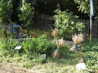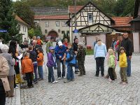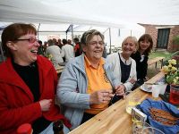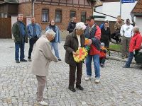 Während hier gefärbt wurde und im Zelt die Volksmusik spielte, traf der Oberbürgermeister von Erfurt, Andreas Bausewein, ein. Er war bereits vor zwei Jahren hier zu Gast gewesen und konnte sich recht gut daran erinnern. Zum kleinen Jubiläum, dem 5. Fest, hatte er natürlich die Einladungt gern angenomen. Ursprünglich wollte er auch bei der Enthüllung des Denkmals dabei sein und helfen, musste seinen Besuch aber wegen seines vollen Terminkalenders um ein paar Stunden verschieben.
