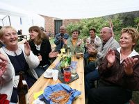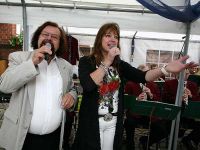 Das Falkenstein-Duo hatte inzwischen die Stimmung noch mehr angefacht und die Sängerin huschte von Schoß zu Schoß und bezirzte Jung wie Alt.