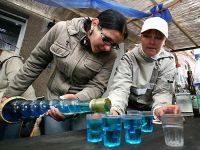 Dann ging es weiter zu Rosanna Minellis kleiner Färbewerkstatt, wo beide Politiker sich vom Blau des Waids persönlich überzeugen und mit Staunen interessant Details erfahren konnten. Schließlich war es dann doch endlich soweit, dass man eine Tasse Kaffee und Kuchen genießen konnte.