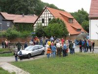 Zentraler Punkt für die Vormittagsstunden des 5. September war das ehemalige Feuerwehrgerätehaus im Unterdorf. Von dort ging es ein Stück den Bach entlang in Richtung Waidgarten. Das Rennen selbst fand in Anwesenheit von den Hochstedter Rennenten-Besitzern und vielen Schaulustigen auf der Höhe der ehemaligen Gaststätte statt. Eine halbe Stunde vor Rennbeginn war das Wasserfass aus Udestedt eingetroffen - es war damit alles für das Wettrennen vorbereitet.