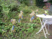 Die Taft-Schleifen selbst wurde noch mit den Abhängungen versehen, die schon im Frühjahr gebastelt worden waren.