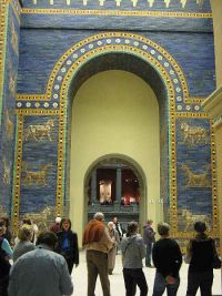 Mit seinen blauen, glasierten Ziegeln, den darauf abgebildeten Fabelwesen, Löwen und Stieren handelte es sich um ein weiteres architektonisches Prunkstück des Museums, diesmal aus dem vorderen Orient, aus Babylon. Es wurde unter König Nebukadnezar II. (605 bis 562 v.u.Z.) errichtet und seit Mitte des 19. Jh. ausgegraben. Die Funde wurden in den 1920er Jahren nach Absprache mit den zuständigen Stellen komplettiert und das Tor im Museum rekonstruiert.
