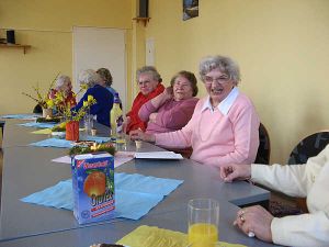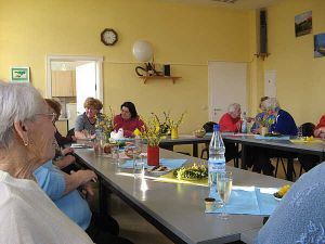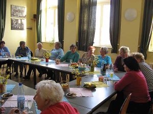 Auch 2010 wurde im Frauentreff Ostern gefeiert, am 23. März. Draußen stand, herrlich geschmückt, die beim letzten Treff geplante Osterkrone und im Bürgerhaus sorgten österlich dekorierte Tische für entsprechende Stimmung bei den Frauen.