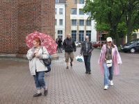 Auch nachdem wir die Kirche verlassen hatten, regnete es weiter. Wir setzten unseren Rundgang in Richtung des rekonstruierten Markttores fort. Jan Klatt erzählte unterwegs, dass der Bürgermeister einer deutschen Großstadt als ein Sohn Elbings, die Turmuhr gestiftet hatte.