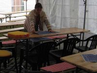 | Kuchensammlung am Morgen des Waidfesttages | Die Tische werden gedeckt |