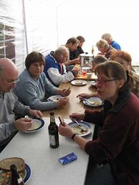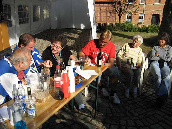 | Gemütliche Frühschoppenrunde nach dem Abbau der Zelte |