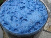 | Wasser von eingeweichten Waidblättern | nach der Zugabe von Natron |