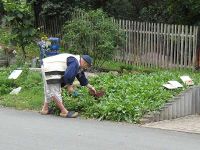 In der Gartensendung des MDR, "MDR-Garten" sollte im September 2010 ein Bericht über unser Projekt "Waidbeet" ausgestrahlt werden. Deshalb war am 28. August ein dreiköpfigen Drehstab in Hochstedt unterwegs. Aufmerksam geworden war die zuständige Redakteurin schon in dem Jahr, in dem wir Waidballen vom Erfurter Anger nach Herzogenaurach "exportiert" hatten (also 2008). Seit dieser Zeit waren etliche Pflanzengenerationen auf unserem Beet herangewachsen und von uns mit Fotoapparat und Waage dokumentiert worden. Diese Aufzeichnungen beeindruckten die MDR-Leute so, dass sie beschlossen einen Bericht darüber zu bringen. Anfang August rief die Redakteurin, Heike Mohr, in Hochstedt an und noch in der gleichen Woche traf man sich vor Ort zu einem Sichtungstermin am Waidbeet und im Museum. Der Bericht sollte von der Arbeit mit der Waidernte und der Weiterverarbeitung zu Waidballen handeln aber auch die Exponate im Museum sowie den im letzten Jahr neu angeschafften Waidstein zeigen.MDR-Drehtag am Waidbeet