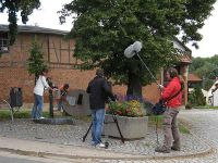 In der Gartensendung des MDR, "MDR-Garten" sollte im September 2010 ein Bericht über unser Projekt "Waidbeet" ausgestrahlt werden. Deshalb war am 28. August ein dreiköpfigen Drehstab in Hochstedt unterwegs. Aufmerksam geworden war die zuständige Redakteurin schon in dem Jahr, in dem wir Waidballen vom Erfurter Anger nach Herzogenaurach "exportiert" hatten (also 2008). Seit dieser Zeit waren etliche Pflanzengenerationen auf unserem Beet herangewachsen und von uns mit Fotoapparat und Waage dokumentiert worden. Diese Aufzeichnungen beeindruckten die MDR-Leute so, dass sie beschlossen einen Bericht darüber zu bringen. Anfang August rief die Redakteurin, Heike Mohr, in Hochstedt an und noch in der gleichen Woche traf man sich vor Ort zu einem Sichtungstermin am Waidbeet und im Museum. Der Bericht sollte von der Arbeit mit der Waidernte und der Weiterverarbeitung zu Waidballen handeln aber auch die Exponate im Museum sowie den im letzten Jahr neu angeschafften Waidstein zeigen.
