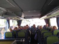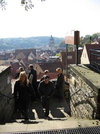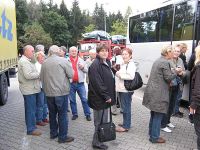 Von dort aus machten wir uns über schmale Treppen, den sogenannten Amtsstufen, an den Abstieg vom Burgberg. Wir waren beim Aufstieg an verschiedenen Restaurants vorbei gekommen, von denen wir jetzt eins aufsuchen wollten. Wir entschieden uns für ein kleines Lokal mit einem Gartenteil, in dem wir auf andere Mitglieder unserer Reisegruppe stießen. Wir stärkten uns und waren dann zur verabredeten Zeit, um 13.30 Uhr am Bus, der am Rossmarkt auf uns wartete. Die Fahrt wurde fortgesetzt und es ging weiter nach Radebeul Ost, wo wir in den Zug umsteigen wollten.