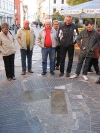 Wir gingen einige Schritte und erreichten einen Brunnen. Dabei handelte es sich um die Nachbildung eines mittelalterlichen Marktbrunnens, welcher König Heinrich I. auf einem Sockel stehend darstellt. Heinrich ließ im Jahr 929 auf dem Berg nahe der Stadt eine Befestigungsanlage errichten, aus der die Burg Meißen entstand. Wir gingen weiter und erreichten einen Platz in dessen Pflaster Metallplatten eingelassen waren, die einige Gebäude der Stadt darstellten und so angeordnet waren, als ob man auf einem riesigen Stadtplan stehen würde. Die Häuserfassaden um uns herum waren bunt gehalten und zeigten damit eine farbenfrohe, schöne Altstadt. Wie der Stadtführer bemerkte, war das nicht immer so. Die Stadt sah gegen Ende der DDR-Zeit furchtbar aus. Heute jedoch gab es wieder vergoldete sächsische Wappen an den Fassaden, die im Sonnenlicht glänzten. Der Stadtführer erzählte von den Wappen in der Dresdner Semperoper, die aufgrund einer seitenverkehrt belichteten Aufnahme von vor der Zerstörung des Gebäudes, gespiegelt angebracht worden waren, so dass der Rauten-Balken von links unten nach rechts oben verläuft anstatt von links oben nach rechts unten.