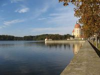 Über eine Empore konnten wir einen Blick in die prächtige Kapelle werfen. Italienische Stuckateure hatten hier ganze Arbeit geleistet und die ovalen Fenster mit barocken Verzierungen versehen. Unter dem Wappen der sächsischen Kurfürsten war eine häbräische Inschriftzu sehen: Heilig, heilig, heilig, Herr der Heerscharen. Im Moritzburger Festsaal waren die Wände wieder mit zahlreichen Geweihen geschmückt und in der Mitte des Raumes stand eine festlich gedeckte Tafel mit Meißner Porzellan. Dabei handelte es sich um eine Nachbildung des originalen Services mit der roten Drachenverzierung.