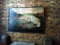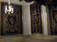 Wir gingen durch verschiedene weitere Räume mit jeweils verschieden gemusterten Wandbespannungen. Es gab sogar in manchen der Zimmer Stühle oder Bänke, die mit der gleichen Musterung wie die Wände des Raumes an Rückenlehne und auf der Sitzfläche bespannt waren. Gemälde von August dem Starken und einiger seiner Mätressen waren genauso zu sehen wie solche mit Jagdszenen und Abbildungen anderer fürstlicher Vergnügungen.